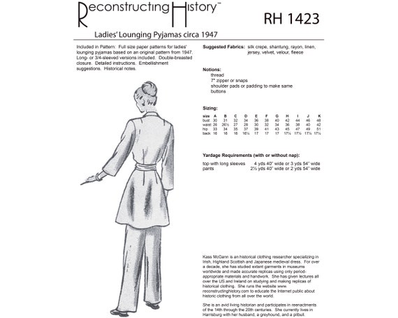 Rh1423 1947 Lounging Pyjamas Sewing Pattern Reconstructing History